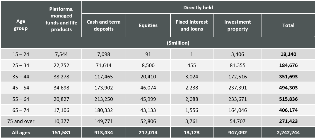 - Make decisions on a whole-of-wealth basis, not just in product silos. When considered as a whole, investments held by Australian households outside super have comparable financial significance to the super system. The table below shows their importance both in accumulating wealth, and in using it to finance retirement income.