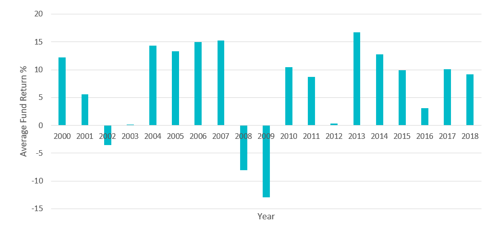 Table 1 shows the aggregate returns of APRA regulated superannuation funds since 2000.  Default superannuation fund returns have been positive for each of the last nine financial years, with many close to or above double digits.  This current bull run in markets means that a reversal is becoming more and more likely.  Could we have a negative 25% return on equities leading to a 10% or more fall in fund returns this year or next year?