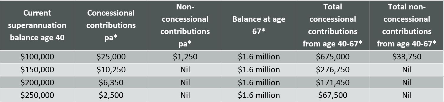 - Five of the eight fund members in the case studies will reach at least $1.6 million without having to make any more non-concessional contributions. Significantly, the remaining three will need to make only modest annual non-concessional contributions.