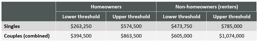 At the time of the change to the taper rate in 2017, the lower thresholds were increased by more than 30% which, according to the government meant that more than 50,000 part-pensioners would become eligible for a full pension for the first time. As the Superannuation Guarantee (SG) system matures, more and more people are expected to retire with higher superannuation balances and as a result of this change are expected to lose a higher amount of pension.